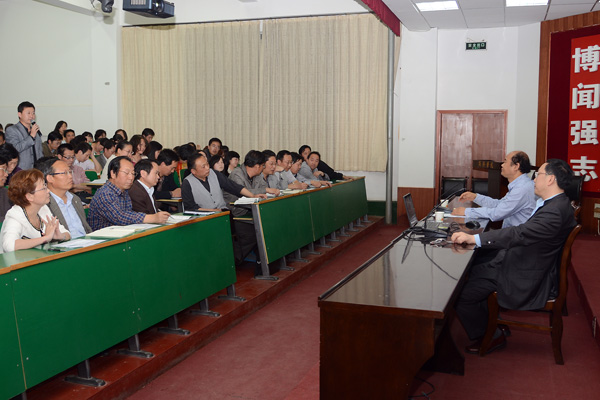 在上午的報告中,史秋衡教授從“關于規(guī)劃的學理、政策與組織視角”、“規(guī)劃的目標與院校使命”、“規(guī)劃的任務與院校遠景”、“國家卓越與院校的核心價值定位”“商洛學院發(fā)展的要素任務”等五個方面介紹了了地方本科院校中長期發(fā)展戰(zhàn)略的若干思考和見解。他指出,當前我國高等教育發(fā)展迅速,地方性本科院校建設處于邊研討邊實踐的過程中,亮點很多,對我國建設最為重要。我國教育發(fā)展頂層設計的靈魂是鄧小平同志提出的“三個面向”,高校要率先實現(xiàn)現(xiàn)代化,面向長遠、面向未來,處理好改革創(chuàng)新與發(fā)展的關系。依據(jù)對地方性本科院校“扶需、扶優(yōu)、扶特”的國家原則,地方性應用型本科院校人才培養(yǎng)的重點是培養(yǎng)服務區(qū)域經(jīng)濟發(fā)展、地方產(chǎn)業(yè)轉型升級、企業(yè)技術創(chuàng)新所需的應用型、技能型、復合型人才。