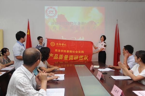 為學(xué)習(xí)貫徹黨的十八大精神和習(xí)近平總書記五四重要講話精神,貫徹落實(shí)中央關(guān)于“我的中國夢(mèng)”教育實(shí)踐活動(dòng)的部署和要求,引導(dǎo)廣大青年學(xué)生通過社會(huì)實(shí)踐了解黨史國情、社會(huì)發(fā)展、民生實(shí)踐,進(jìn)一步深入推進(jìn)實(shí)踐育人工作,7月11日,我校開展2013年暑期“三下鄉(xiāng)”社會(huì)實(shí)踐出征儀式,校黨委副書記左曉民、商洛市質(zhì)量技術(shù)監(jiān)督局副局長倪曉燕等出席了本次儀式。