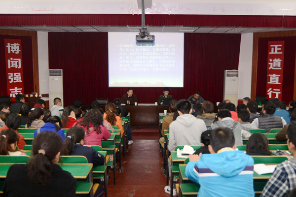 2013年“119”消防宣傳日的主題是“認(rèn)識火災(zāi),學(xué)會逃生”。為了給師生普及消防安全知識,強化消防安全意識,根據(jù)學(xué)校消防安全工作領(lǐng)導(dǎo)小組的部署安排,11月12日下午,我校舉辦消防安全知識培訓(xùn)會。商州公安消防大隊上尉蘇濤來校為師生作了培訓(xùn)報告。保衛(wèi)處處長王國民,各部門、各系消防安全員,實驗室管理員,食堂負(fù)責(zé)人,公寓服務(wù)員,各班安全委員等參加了培訓(xùn)會。培訓(xùn)會由保衛(wèi)處副處長房喜峰主持。
