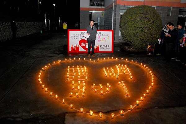 3月6日晚,我校學(xué)生自發(fā)組織起來為昆明“3·01”暴力恐怖事件中遇難的同胞默哀,為傷者祈福。在肅穆凝重的氛圍中,同學(xué)們點(diǎn)燃一根根蠟燭,拼成愛心圖案和“昆明 3·01”字樣。大家為遇難者默哀3分鐘,不少同學(xué)的眼眶漸漸濕潤。一位同學(xué)哽咽著說:“昆明發(fā)生的暴力事件讓人震驚和心寒,無辜生命的離去,讓我們更加珍惜自己的生命,希望世界和平安定,大家都可以平安幸福地生活。愿生者堅(jiān)強(qiáng),愿死者安息。”