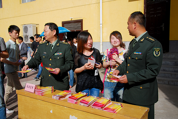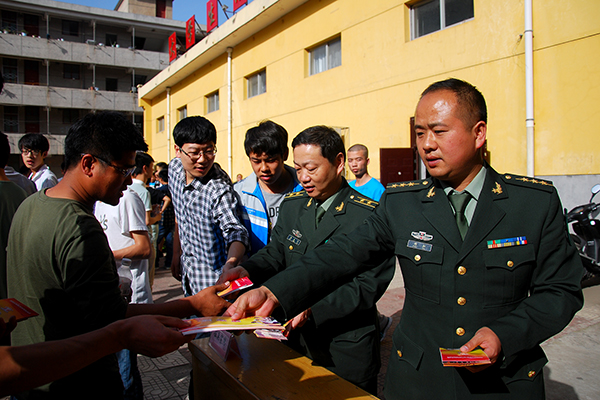 宣講結(jié)束后,張永忠、沈禮軍等人來到我校設(shè)立的各征兵宣傳點(diǎn),向在校學(xué)生發(fā)放宣傳手冊,現(xiàn)場為同學(xué)們開展征兵政策咨詢。