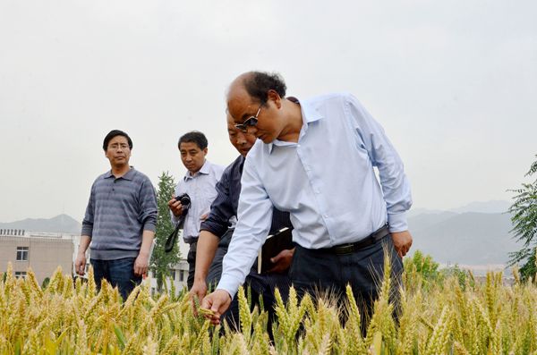 5月30上午,校長(zhǎng)劉建林在小麥育種專家于浩世的陪同下,深入小麥試驗(yàn)田,調(diào)研我校小麥新品系“商麥065—10—16”和“商麥0613—12—3—2”的試種情況。校秦嶺植物良種繁育中心主任王新軍、生物醫(yī)藥與食品工程學(xué)院副院長(zhǎng)張向東、校辦公室副主任魚小強(qiáng)陪同調(diào)研。