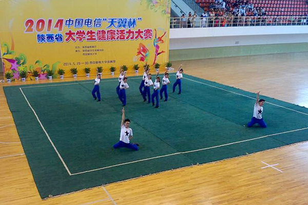 5月27日至6月1日,由陜西省教育廳主辦,陜西省學(xué)生體育協(xié)會(huì)、西安郵電大學(xué)承辦的2014年陜西省大學(xué)生健康活力大賽于在西安郵電大學(xué)(長(zhǎng)安校區(qū))體育館舉行。來(lái)自全省49所高校的1299名運(yùn)動(dòng)員參加本次比賽。我校健美操隊(duì)參加了普通高校組3個(gè)項(xiàng)目的比賽。經(jīng)過緊張激烈的角逐,我校代表隊(duì)獲得中國(guó)風(fēng)健身舞(草原雄鷹)第二名,健身排舞第二名,街舞推廣套路JAZZ規(guī)定套路第五名,總團(tuán)體第十名,并獲得“體育道德風(fēng)尚獎(jiǎng)”。王晨晨同學(xué)獲得 “優(yōu)秀運(yùn)動(dòng)員”稱號(hào),教練張玉蘭應(yīng)邀擔(dān)任本次比賽的裁判工作并獲得“優(yōu)秀裁判員”稱號(hào)。