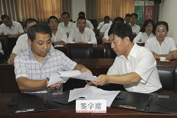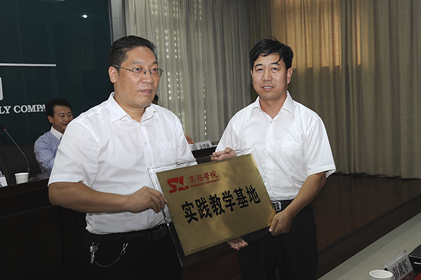 發(fā)展規(guī)劃與合作交流處處長(zhǎng)王新軍與丹鳳電力局局長(zhǎng)郭瑞鋒代表雙方分別在“校外實(shí)踐教學(xué)基地建設(shè)”協(xié)議書(shū)上簽字。教務(wù)處處長(zhǎng)李超向丹鳳電力局授牌。