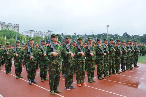 2014級新生軍訓已接近尾聲,在最后的幾天里,同學們主要訓練了軍體拳、花樣隊列、持槍操練等項目。雖然在訓練間隙還伴有秋雨,但同學們的熱情依然高漲,訓練十分認真,絲毫沒有松懈。
