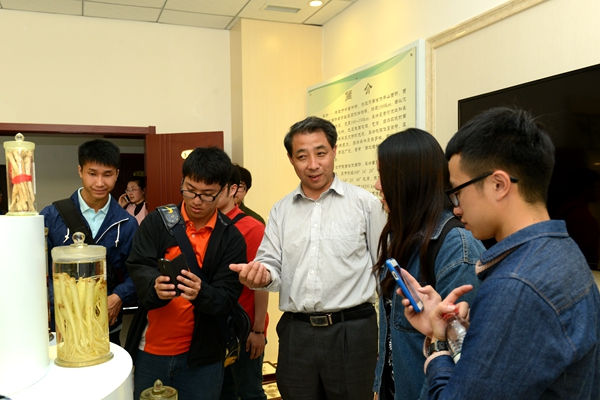 在生物醫(yī)藥與食品工程學(xué)院師生代表的陪同下,臺灣師生饒有興致地參觀了秦嶺植物標(biāo)本陳列室,現(xiàn)場品嘗了生物醫(yī)藥與食品工程學(xué)院自釀的山茱萸葡萄酒,稱有家鄉(xiāng)桑葚果汁的味道。他們對秦嶺豐富的生物資源尤其是中藥資源興趣濃厚,紛紛拍照留念。