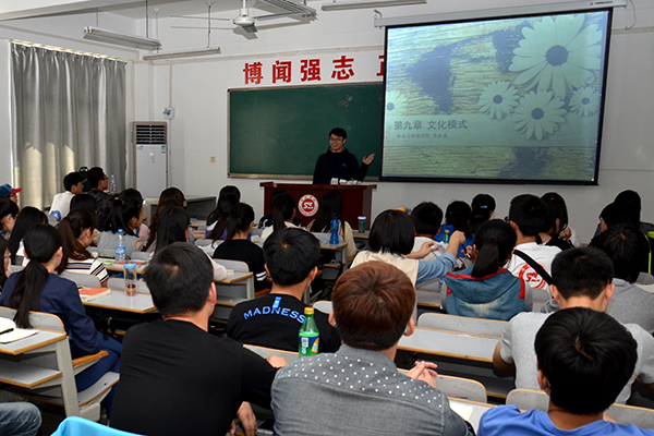 臺灣南開科技大學(xué)學(xué)子盧瑞林在經(jīng)濟與管理學(xué)院《文化學(xué)教程》課上介紹臺灣文化