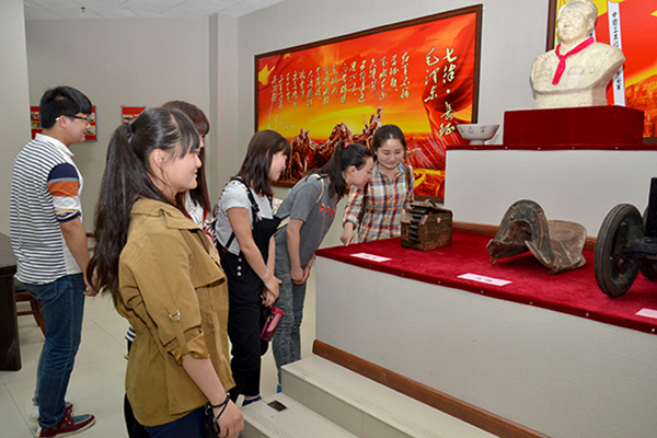 為加強(qiáng)思想政治理論課實(shí)踐教學(xué),促進(jìn)我校學(xué)生全面地了解商洛紅色革命文化,提高學(xué)生的政治思想道德修養(yǎng)、培養(yǎng)學(xué)生的愛國主義情懷,5月5日,思想政治理論課教學(xué)研究部組織我校電子信息與電氣工程學(xué)院、化學(xué)工程與現(xiàn)代材料學(xué)院、經(jīng)濟(jì)與管理學(xué)院、藝術(shù)學(xué)院部分2013級學(xué)生參觀了我校商洛紅色文化資料館。