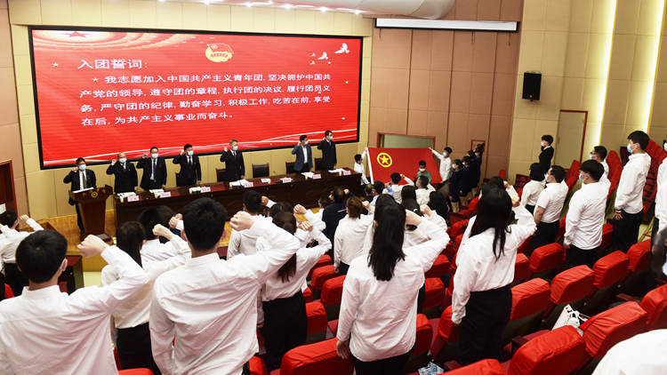 在校領(lǐng)導(dǎo)的帶領(lǐng)下,全體與會(huì)人員重溫入團(tuán)誓詞。廣大團(tuán)員青年用錚錚誓言表達(dá)出聽黨號(hào)令、跟黨奮斗,不忘初心擔(dān)使命,踴躍投身疫情防控工作和新時(shí)代中國(guó)特色社會(huì)主義建設(shè)的堅(jiān)強(qiáng)意志。