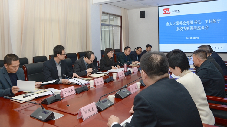 3月7日下午,商洛市人大常委會黨組書記、主任陳寧一行來我??疾煺{(diào)研,了解學(xué)校服務(wù)商洛“中國康養(yǎng)之都”建設(shè)工作情況。校黨委書記張志昌主持調(diào)研座談會。校長范新會、副校長王新軍參加座談會并陪同調(diào)研。