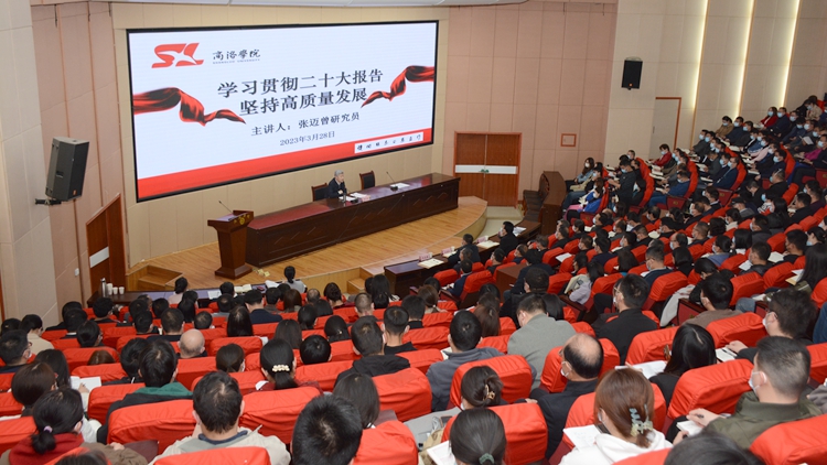 為深入學(xué)習(xí)宣傳貫徹黨的二十大精神,推動(dòng)學(xué)校高質(zhì)量發(fā)展,3月28日下午,我校特邀西安交通大學(xué)原黨委書記張邁曾研究員來校作題為《學(xué)習(xí)貫徹黨的二十大報(bào)告 堅(jiān)持高質(zhì)量發(fā)展》的輔導(dǎo)報(bào)告。校黨委書記張志昌主持報(bào)告會(huì)。校長(zhǎng)范新會(huì)、黨委副書記彭虎軍、副校長(zhǎng)劉寶盈出席報(bào)告會(huì)。全體科級(jí)以上黨員干部、“思政火炬”“紅色號(hào)角”宣講團(tuán)成員和師生代表400余人聽取報(bào)告。