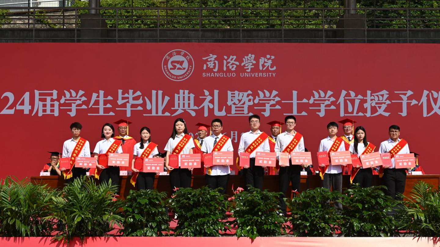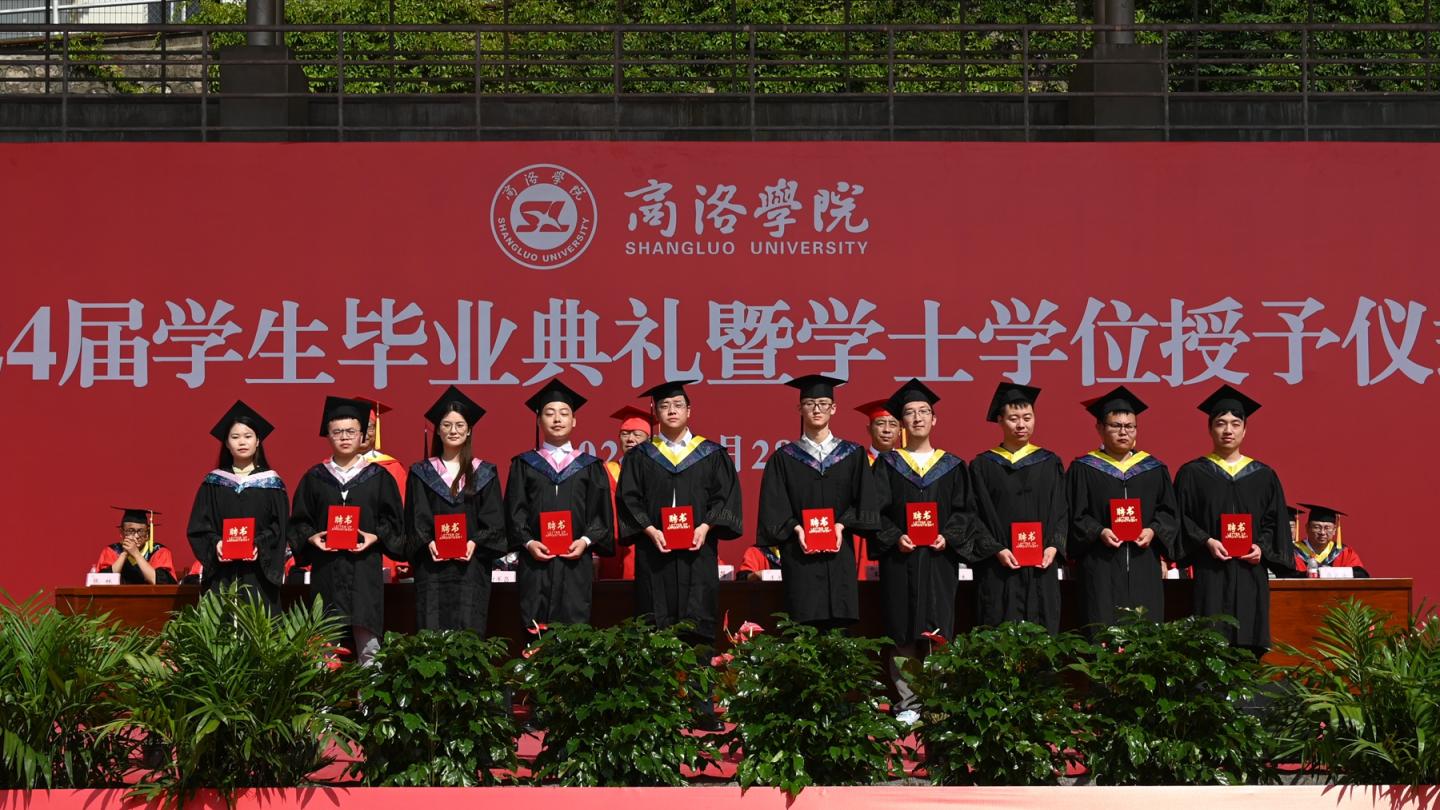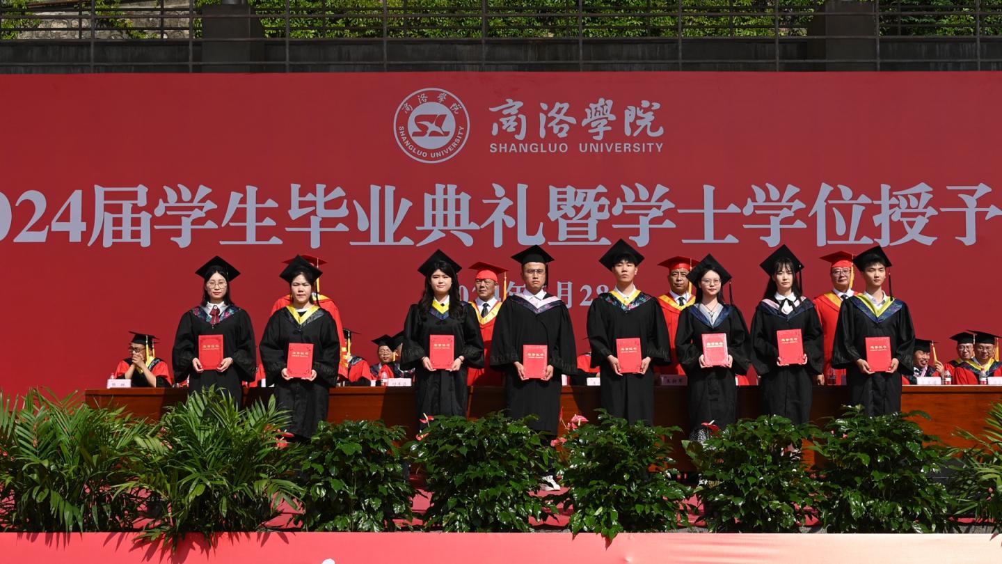 王新軍宣讀了商洛學院2024屆畢業(yè)生資格審查結(jié)果通報、學士學位授予決議、商洛學院優(yōu)秀畢業(yè)生表彰決定、商洛學院“奉獻基層 服務邊疆”優(yōu)秀畢業(yè)生表彰決定、商洛學院校友總會聘任2024屆校友聯(lián)絡員通知。在熱烈的掌聲中,校領導為優(yōu)秀畢業(yè)生頒發(fā)證書,為校友聯(lián)絡員頒發(fā)了聘書。