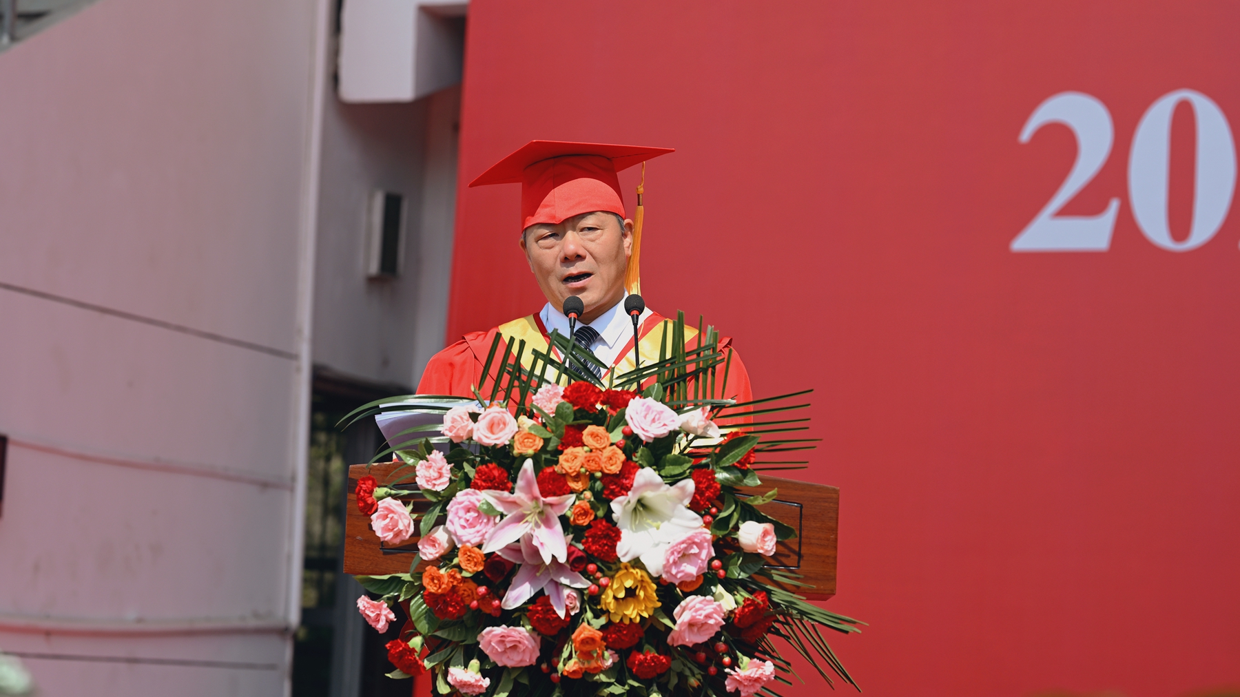 張志昌寄語全體畢業(yè)生,要把穩(wěn)“青春之舵”,做初心如磐的有志青年,把實現(xiàn)人生價值的“青春夢”,與實現(xiàn)民族復興的“中國夢”緊密結(jié)合,在報效祖國、服務社會中彰顯青春本色。要永葆“青春之心”,做祟真尚善的有德青年,在人生正道上健康成長、行穩(wěn)致遠。要積蓄“青春之力”,做勤學篤行的有才青年,在摸爬滾打中增長本領,練就勇于擔當?shù)蔫F肩膀、硬脊梁、真本事,用過硬的本領展現(xiàn)新時代的新作為。要點燃“青春之火”,做銳意進取的有為青年,時刻保持敢闖敢干的拼勁與活力,奮力書寫中國式現(xiàn)代化、挺膺擔當?shù)那啻浩隆?/p>
