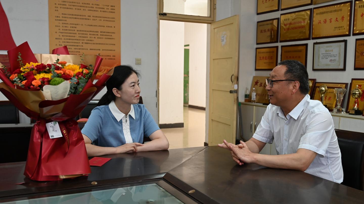 副校長劉寶盈前往人文學(xué)院,慰問2023年陜西省思政大練兵課程思政教學(xué)標(biāo)兵、2024年陜西省第六屆青年教師教學(xué)技能競賽二等獎(jiǎng)獲得者劉玉婷老師,鼓勵(lì)她全面總結(jié)比賽經(jīng)驗(yàn),力爭在未來的教學(xué)和科研工作中取得更加優(yōu)異的成績。