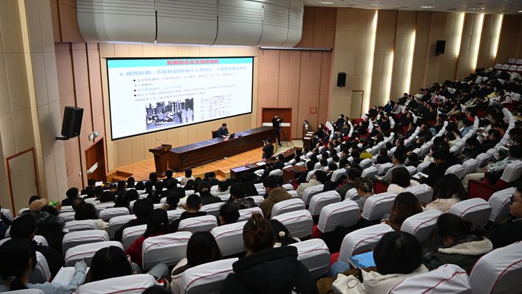 簽約儀式后,蔣莊德院士以《傳承·創(chuàng)新·融合》為題,為學院師生作學術(shù)報告。副校長王新軍主持報告會。