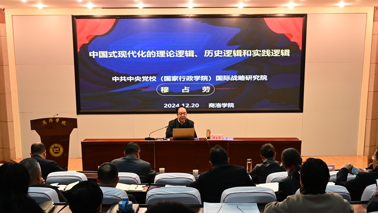 12月20日,商洛學(xué)院召開黨委理論學(xué)習(xí)中心組集體學(xué)習(xí)(擴(kuò)大)會議,專題學(xué)習(xí)習(xí)近平總書記對新時代馬克思主義理論研究和建設(shè)工程作出的重要指示精神,邀請中共中央黨校(國家行政學(xué)院)國際戰(zhàn)略研究院教學(xué)秘書、研究生導(dǎo)師穆占勞教授作輔導(dǎo)報(bào)告。會議由校黨委副書記、校長權(quán)雅寧主持。校黨委理論學(xué)習(xí)中心組成員,各二級學(xué)院黨委、黨總支、直屬黨支部負(fù)責(zé)人,各二級學(xué)院院長、職能部門負(fù)責(zé)人及思政課教師代表參加學(xué)習(xí)。