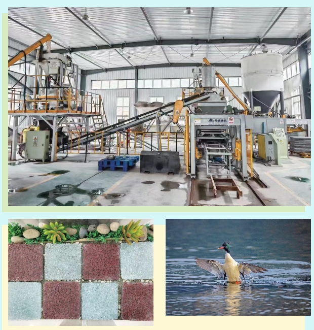利用尾礦材料制作的玻璃透水磚(左下)