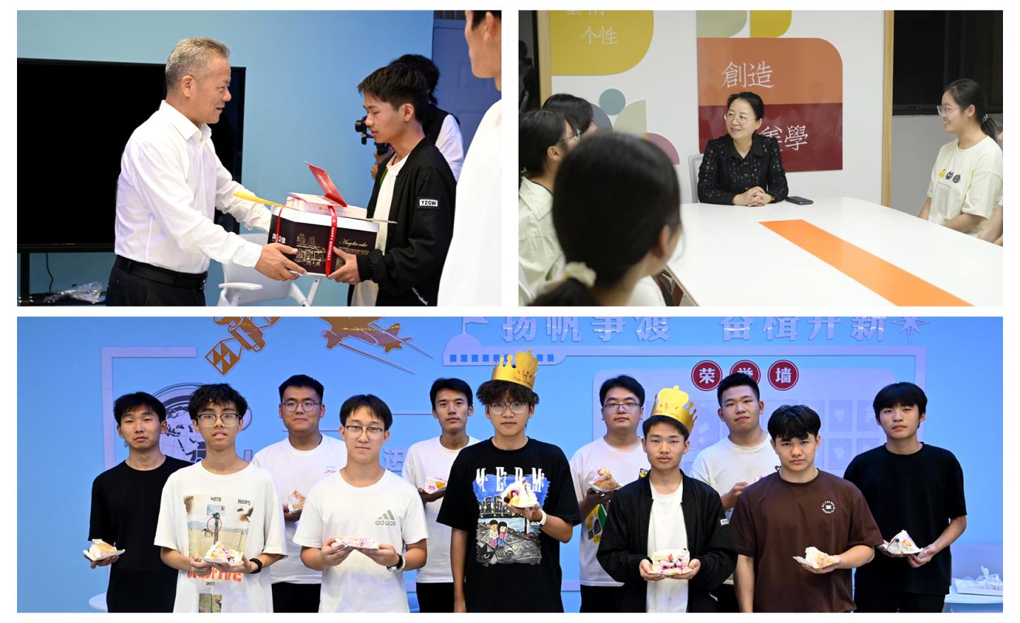 校領(lǐng)導(dǎo)張志昌、權(quán)雅寧、劉寶盈、王新軍、王浩、郭瑾、程敏還分別深入學(xué)生社區(qū)和新生宿舍,為迎新期間過生日的16名2025級(jí)學(xué)生舉辦了簡(jiǎn)單而溫馨的集體生日會(huì)。向他們送上生日祝福和生日蛋糕,傾聽新生的入學(xué)感受,解答同學(xué)們關(guān)于學(xué)業(yè)與生活的困惑并給予貼心建議。校領(lǐng)導(dǎo)勉勵(lì)新生,要充分把握“大學(xué)”這一重要成長階段,早日成長為有理想、有本領(lǐng)、有擔(dān)當(dāng)?shù)男聲r(shí)代青年。