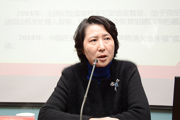 姜杰闡述了十八大以來(lái)的反腐形勢(shì),回顧了2014年全國(guó)反腐情況,分析了2015年反腐任務(wù)清單,講解了職務(wù)犯罪的概念、分類及特點(diǎn),并結(jié)合法律法規(guī)及真實(shí)案例,對(duì)貪污罪、受賄罪、挪用公款、小金庫(kù)等典型職務(wù)犯罪行為,進(jìn)行了深入剖析。在報(bào)告中,她對(duì)防范職務(wù)犯罪提出了具體建議,希望黨員干部嚴(yán)以用權(quán),恪守職業(yè)準(zhǔn)則,正確看待圍繞在權(quán)力周?chē)娜撕褪拢硎茏杂傻目少F,愛(ài)惜自己和家人,遠(yuǎn)離職務(wù)犯罪。