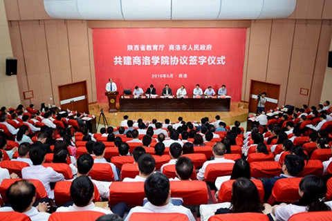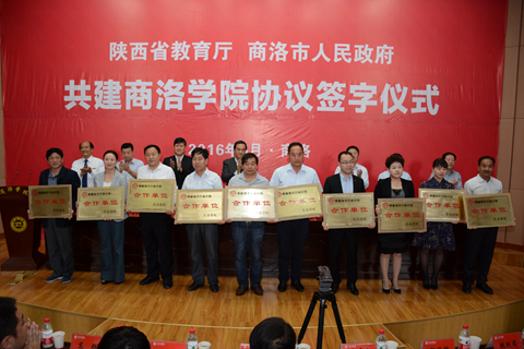 陜西省委高教工委辦公室,省教育廳高教處、財務(wù)處、發(fā)展規(guī)劃處、基教一處等有關(guān)處室負(fù)責(zé)人,商洛市發(fā)改委、規(guī)劃局、教育局、科技局、工信局、財政局、國土資源局、建設(shè)局、衛(wèi)計局、商丹園區(qū)管委會等政府部門、單位負(fù)責(zé)人,根植地方行動計劃合作單位代表,師生代表等參加簽字儀式。