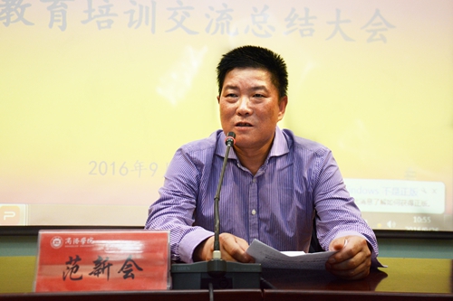 范新會在講話中指出,在我?!笆濉逼鸩诫A段、各項工作全面快速發(fā)展的時期舉辦基層黨組織書記“兩學(xué)一做”學(xué)習(xí)教育培訓(xùn)班,具有重要意義。培訓(xùn)及時,安排周密,組織到位,收獲較大,達到了預(yù)期效果。范新會代表校黨委對參訓(xùn)學(xué)員提出三點要求:一要借此學(xué)習(xí)機會,進一步深入推進“兩學(xué)一做”,充分領(lǐng)會“兩學(xué)一做”精神,將精神貫穿到實際工作中去;二要將培訓(xùn)成果應(yīng)用到基層黨建中,加強學(xué)校黨的建設(shè);三要努力做好基層黨建工作,充分發(fā)揮基層黨組織的戰(zhàn)斗堡壘作用,發(fā)揮廣大黨員模范帶頭作用,團結(jié)帶領(lǐng)師生為學(xué)校改革發(fā)展做出新的貢獻。