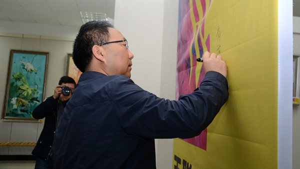 4月17日,藝術(shù)學(xué)院美術(shù)專業(yè)學(xué)生王聰“我心我塑” 畢業(yè)油畫展在藝術(shù)展廳拉開帷幕,校黨委書記龍治剛參觀了畫展。龍治剛在參觀中對(duì)王聰?shù)膭?chuàng)作水平給予了肯定,并勉勵(lì)他抓住重點(diǎn),大膽突破,創(chuàng)作出更好的作品。