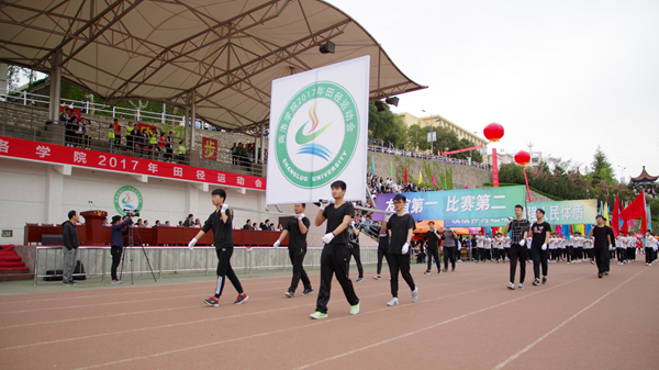 追逐四月的和風(fēng),沐浴初夏的陽光,4月20日上午,我校2017年田徑運(yùn)動(dòng)會(huì)正式開幕。校長范新會(huì)、紀(jì)委書記王思懷、副校長劉勇出席開幕式。由各二級學(xué)院和教職工代表組成的10個(gè)方隊(duì),以昂揚(yáng)的姿態(tài)、矯健的步伐走過主席臺,展現(xiàn)了我校師生意氣風(fēng)發(fā)、昂揚(yáng)向上的精神風(fēng)貌。范新會(huì)致開幕詞并宣布運(yùn)動(dòng)會(huì)開幕。各二級教學(xué)單位黨政負(fù)責(zé)人、各職能部門負(fù)責(zé)人以及全體學(xué)生參加本次運(yùn)動(dòng)會(huì)。開幕式由劉勇主持。