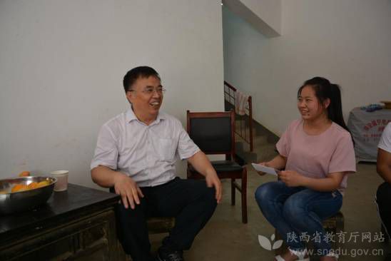 6月18日上午,陜西省政府學(xué)位委員會(huì)秘書(shū)長(zhǎng)袁寧利用周末時(shí)間來(lái)到鎮(zhèn)安縣回龍鎮(zhèn)和坪村,看望慰問(wèn)他聯(lián)系的建檔立卡貧困戶(hù)學(xué)生張永慧。校長(zhǎng)范新會(huì)陪同走訪(fǎng)。