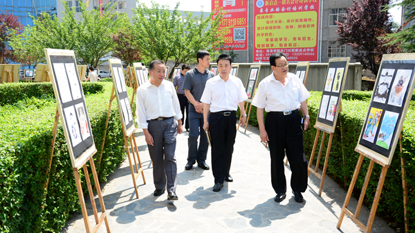 為喜迎建黨96周年,推進(jìn)“兩學(xué)一做”學(xué)習(xí)教育常態(tài)化制度化,營造風(fēng)清氣正的校園育人環(huán)境,6月22日,我校迎“七一”廉潔文化作品展在一號教學(xué)樓前展出。中國科學(xué)院院士、我?!半p聘院士”趙鵬大教授,陜西省學(xué)位委員會秘書長袁寧,校領(lǐng)導(dǎo)龍治剛、范新會、王思懷、魏書堂、彭虎軍、劉勇與師生一同參觀了展覽。