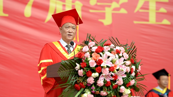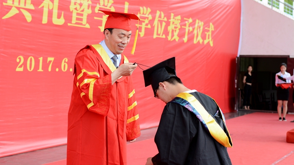 校長范新會以《永遠與母校共同成長和發(fā)展》為題發(fā)表了情真意切的講話,對即將步入社會的畢業(yè)生表達了最真摯的祝福。他深情地說,大學四年生活是人生中一段抹不去的記憶,是人生經歷中不可多得的閱歷與財富,同學們也是學校歷史上不可或缺的重要一員!在過去的四年里,同學們在學校學習知識、增長才干、砥礪品格、收獲情誼。走向社會,同學們將用學到的知識、練就的才能去開創(chuàng)你們未來的事業(yè),同學們未來的成就將永遠是學校的驕傲和財富。