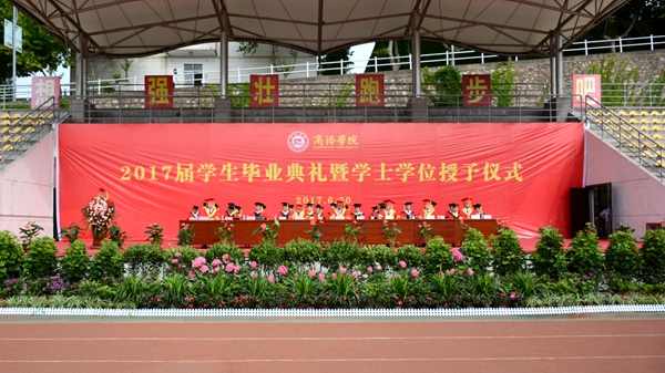 6月30日,我校隆重舉行2017屆學生畢業(yè)典禮暨學士學位授予儀式。校領導龍治剛、范新會、王思懷、魏書堂、彭虎軍、劉寶盈、劉勇出席典禮。各院(部)黨政主要負責人,校學位評定委員會委員,相關部門負責人,全體畢業(yè)生及畢業(yè)班輔導員、班主任參加典禮。典禮由黨委副書記彭虎軍主持。