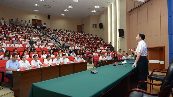 全體校領導、各部門主要負責人、各院(部)黨政主要負責人、師生代表共500余人聆聽了報告。