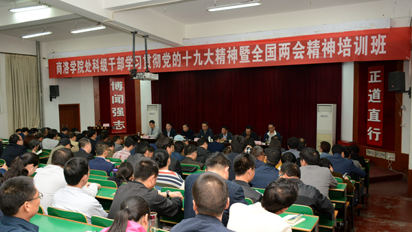 為了進(jìn)一步學(xué)習(xí)貫徹黨的十九大精神暨全國(guó)“兩會(huì)”精神,龍治剛對(duì)全校處科級(jí)干部提出三點(diǎn)要求:一是進(jìn)一步加強(qiáng)學(xué)習(xí),在提升政治素質(zhì)和業(yè)務(wù)水平上做文章。深入學(xué)習(xí)黨的十九大精神,提升政治素養(yǎng)。深入學(xué)習(xí)業(yè)務(wù)知識(shí),提升工作能力;二是進(jìn)一步轉(zhuǎn)變作風(fēng),在發(fā)揮干部引領(lǐng)示范作用上做文章。要永葆干事創(chuàng)業(yè)的激情,嚴(yán)守政治紀(jì)律和規(guī)矩,始終堅(jiān)持人民立場(chǎng),加強(qiáng)自律守住底線;三是進(jìn)一步推動(dòng)落實(shí),在促進(jìn)學(xué)校事業(yè)發(fā)展上做文章。要當(dāng)“主攻手”不要當(dāng)“二傳手”,厲行節(jié)約提高效益,推進(jìn)民主增強(qiáng)團(tuán)結(jié),開(kāi)好二級(jí)教代會(huì)完善績(jī)效分配改革。他希望全校處科級(jí)干部發(fā)揮好示范引領(lǐng)作用,與廣大教職員工共同努力,推動(dòng)黨的十九大精神和習(xí)近平新時(shí)代中國(guó)特色社會(huì)主義思想落地落實(shí),推動(dòng)我校第二次黨代會(huì)和2018年工作要點(diǎn)提出的各項(xiàng)工作有序開(kāi)展,推動(dòng)學(xué)校改革發(fā)展和追趕超越取得實(shí)效。