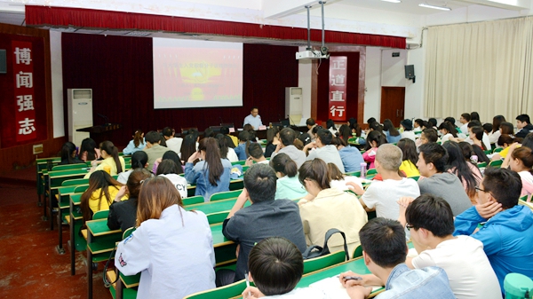5月7日,校黨委書記龍治剛以《與大學生入黨積極分子談理想信念》為題,為生物學院2018年入黨積極分子和全體學生黨員上了一堂立意高遠、內(nèi)涵豐富、振奮人心的黨課。生物學院黨總支負責人和各學生黨支部書記參加了黨課學習。