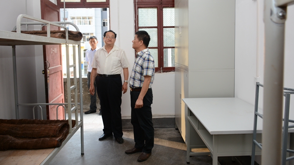 8月31日,校長(zhǎng)范新會(huì),副校長(zhǎng)魏書堂、劉勇在黨政辦公室、教務(wù)處、資產(chǎn)管理處、后勤保障處、信息中心負(fù)責(zé)人的陪同下深入學(xué)生宿舍、新建綜合大樓等場(chǎng)所,檢查開學(xué)準(zhǔn)備情況。