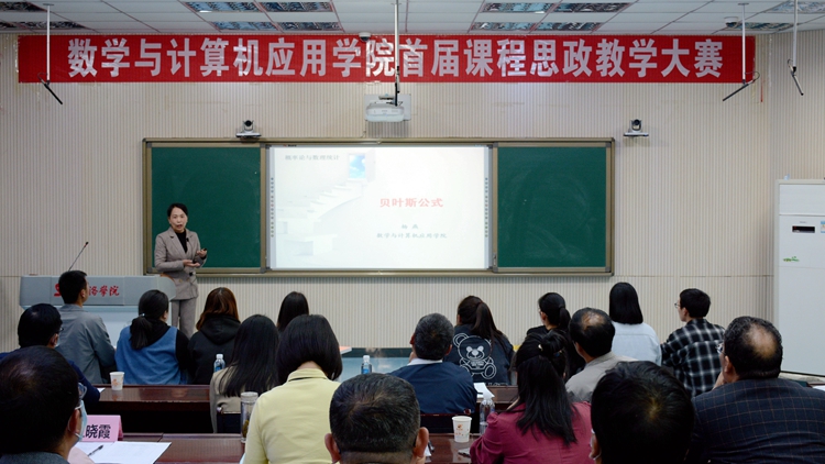 劉寶盈在總結講話中指出,此次大賽充分展示了我校教師理論功底和教學水平,為各二級學院推動各類課程與思政課程相融相促、同向同行起到了積極的促進作用。他要求各二級學院要進一步深入貫徹落實《高等學校課程思政建設指導綱要》,充分結合學院專業(yè)和學科特點,制定科學合理的課程思政建設方案,不斷完善教學管理體系,推進課程思政建設守正創(chuàng)新。要求數計學院要以本次比賽為契機,鼓勵教師探索多種形式的課堂教學創(chuàng)新方法,努力選樹一批課程思政優(yōu)秀教師,充分發(fā)揮優(yōu)秀教師的示范輻射帶動作用。要求全體教師要牢固樹立課程思政意識,明確培養(yǎng)什么人、怎樣培養(yǎng)人及為誰培養(yǎng)人,積極落實立德樹人根本任務,充分發(fā)揮課堂教學主陣地作用,將課程思政融入課堂教學全過程,將學生價值塑造、知識傳授與能力培養(yǎng)融為一體,引導學生樹立正確的世界觀、人生觀、價值觀。