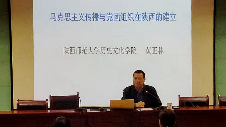 4月28日下午,馬克思主義學院在圖書館一樓報告廳舉辦黨史學習教育專題報告會。特邀陜西師范大學歷史文化學院教授、博士生導師黃正林為師生作了主題為“馬克思主義傳播與陜西黨團組織的建立”的學術報告會。報告會由馬克思主義學院院長蔣正治主持。