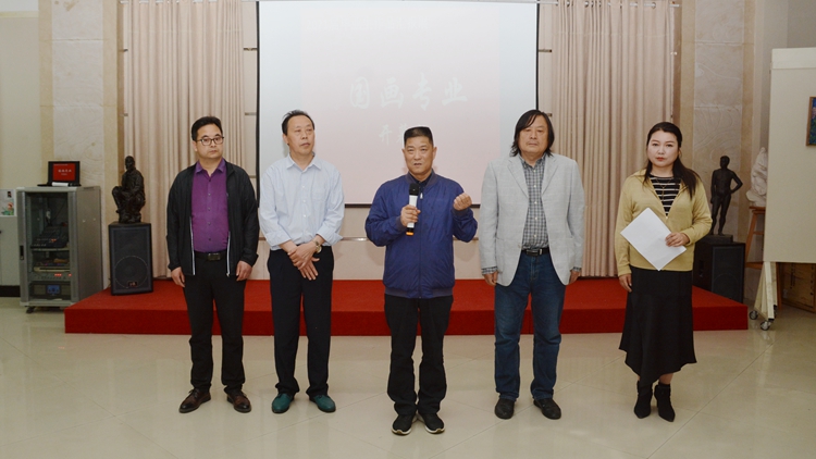 藝術學院院長劉鳳林宣布作品展開幕。副院長唐曌堃暢談了畫展開幕感受,并對畢業(yè)生給予鼓勵。學生代表在發(fā)言中表達了對我校全體教師的感恩之情,表示將始終牢記母校教師的諄諄教誨,在今后的工作生活中不斷努力前進。