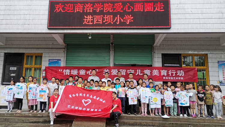 7月2日,我校承擔的公益項目“鄉(xiāng)村愛心畫圃”走進了洛南縣保安鎮(zhèn)西壩小學,項目指導教師、藝術(shù)學院教師李斌、王淦卿和李萍及項目成員參加活動。
