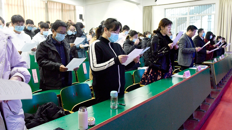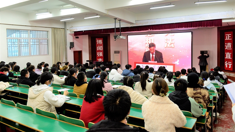 12月4日是“國家憲法日”。我校組織師生收看和同步參與國家憲法日“憲法晨讀”活動(dòng),引導(dǎo)師生自覺尊崇憲法、學(xué)習(xí)憲法、遵守憲法、維護(hù)憲法、運(yùn)用憲法。校宣傳部、學(xué)工部、團(tuán)委相關(guān)負(fù)責(zé)人,各二級(jí)學(xué)院師生代表共90余人參加活動(dòng)。