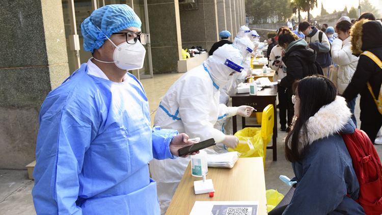 根據(jù)陜西省教育考試院《2022年陜西省碩士研究生招生考試公告》精神及組考防疫相關(guān)要求,為確保研考工作有序進(jìn)行、考務(wù)人員及考生生命安全和身體健康,12月24日,我校在北新街校區(qū)、丹江校區(qū)和南院家屬區(qū)設(shè)立核酸檢測(cè)點(diǎn),邀請(qǐng)商洛市中心醫(yī)院醫(yī)護(hù)人員來(lái)校,為研究生招生考試考務(wù)工作人員、參考學(xué)生、后勤保衛(wèi)人員等共6190人統(tǒng)一進(jìn)行核酸檢測(cè)。