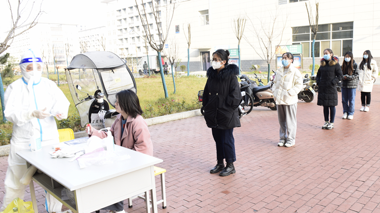 按照學(xué)校統(tǒng)一安排,師生前往核酸檢測(cè)點(diǎn),按照疫情防控工作要求進(jìn)行有序采樣。