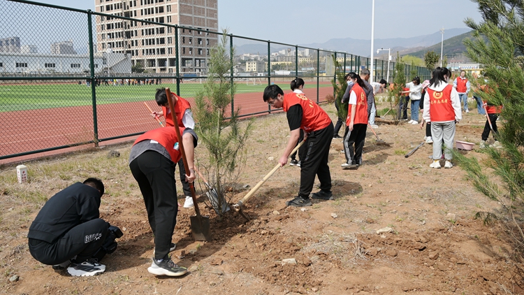 春到人間草木知,正值一年添綠時。在第44個全民義務(wù)植樹節(jié)來臨之際,我校黨員干部師生廣泛參與義務(wù)植樹活動。3月11日下午,校領(lǐng)導(dǎo)范新會、彭虎軍、劉勇、劉寶盈、王新軍、郭瑾與青年志愿者們一起來到丹江校區(qū),為校園再添綠裝。黨委辦公室、發(fā)展規(guī)劃處、后勤保障處、丹江校區(qū)管理處等部門職工和團(tuán)委青年志愿者協(xié)會近百名師生參加活動。