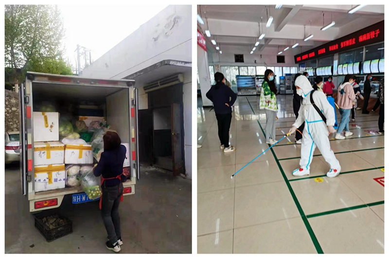 疫情期間,兩校區(qū)超市、快遞、理發(fā)店等處均有人員值班值守。各學生公寓管理員天不亮就起床,對每層樓公共區(qū)域進行無死角打掃,深入每個宿舍將垃圾統(tǒng)一進行收集聯(lián)系并清運人員處理。校內(nèi)留觀學生由醫(yī)護人員上門為進行核酸檢測,安排專人一日3次送餐。消毒人員每天對各公寓公共區(qū)域、重點部位及電梯間進行消毒。環(huán)衛(wèi)人員加班加點及時完成垃圾清運、校園環(huán)境保潔等任務。各二級學院動員學生志愿者協(xié)助公寓管理員做好學生出入登記、消毒、測溫等工作。由于綠化帶養(yǎng)護人員緊張,丹江校區(qū)管理處、化材學院、生物學院、電信學院等單位負責人和教職工義務參加綠化區(qū)域綠植澆灌,與后勤保障人員一道,為美化校園環(huán)境做出自己的貢獻。
