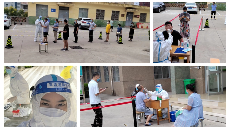 疫情發(fā)生以來,黨委辦公室、后勤保障處主要負(fù)責(zé)人和相關(guān)工作人員日夜堅(jiān)守在工作崗位上,確保各類信息暢通、防控工作落實(shí)到位、校內(nèi)師生生活保障無憂。校醫(yī)院任秀梅、阮佳、童婭等工作人員克服家庭困難,每日為校內(nèi)700余名師生員工和家屬進(jìn)行核酸檢測采樣。每個(gè)核酸采樣臺(tái)每次需要3名志愿者,協(xié)助核酸檢測掃描和消毒工作。黨委辦公室和人事處就近抽調(diào)校內(nèi)人員,廣大黨員職工踴躍報(bào)名,教職工張可可、李志超、王旭紅、李先勇等60余人分批輪崗,確保每日全員核酸檢測采樣工作順利完成。今年暑期天氣酷熱,協(xié)助核酸檢測的志愿者每天清晨5點(diǎn)半穿好防護(hù)服,一直工作到上午11點(diǎn)。在3、4個(gè)小時(shí)的高強(qiáng)度工作后,全身都被汗水浸濕。建工學(xué)院教師丁少男博士做完志愿工作后,在朋友圈中感慨地表示,“對于很多人來說,只是簡單的排隊(duì)掃碼,做一次核酸,對志愿者和檢測人員來說,他們要經(jīng)過千百次的重復(fù)!單純的掃碼都可以讓全身衣服濕透。力所能及做一點(diǎn)自己的工作,希望這座城早點(diǎn)迎來勝利的曙光!”