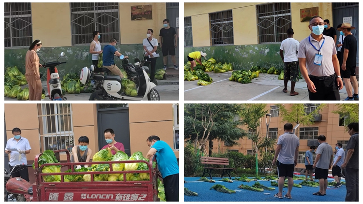 為了協(xié)助解決靜態(tài)管理期間校內(nèi)教職工生活保障問題,在校黨員干部陳煒和王輝積極與東關(guān)菜市場商家聯(lián)系,建立物資采購微信群,收集匯總家屬區(qū)職工的采購需求,由商家定時(shí)送貨到家屬區(qū)門口。汪玉琳、周小婷、劉敦俊、侯德峰、范申民等10余名黨員自覺組成志愿者服務(wù)隊(duì),統(tǒng)一按戶數(shù)分裝,送貨上門,確保南院職工足不出戶就能收到米面、蔬菜等生活物資。