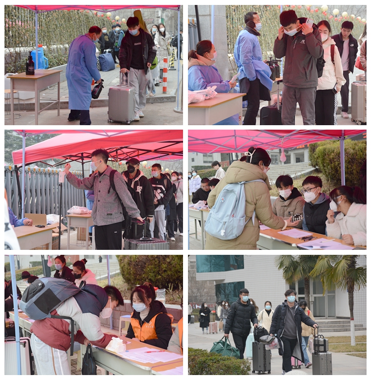 返校期間,各地學(xué)生嚴(yán)格按照流程,在規(guī)定時(shí)間內(nèi)分別從指定校門進(jìn)入,經(jīng)過行李消殺、口罩更換、測量體溫,再到所在學(xué)院現(xiàn)場辦公處進(jìn)行登記后返回宿舍。學(xué)生處、團(tuán)委及各二級學(xué)院安排志愿者幫助入校學(xué)生搬運(yùn)行李、辦理登記手續(xù),提供暖心服務(wù)。