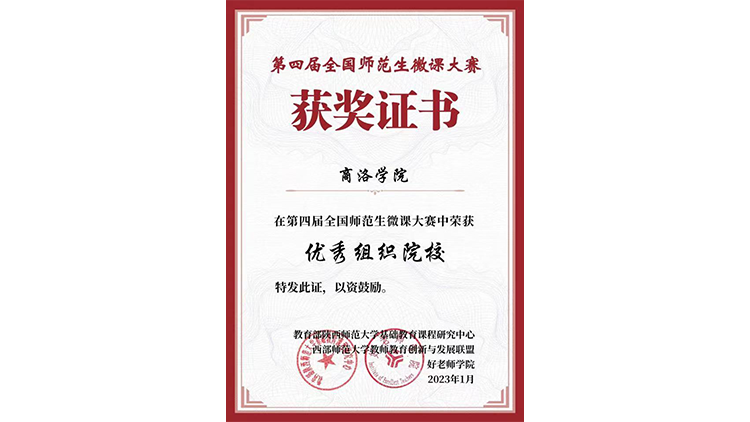 近日,第四屆全國師范生微課大賽結(jié)果公布。我校師生獲得各類獎項13項,其中學(xué)生榮獲特等獎1項、一等獎2項、二等獎8項,人文學(xué)院喬金果老師榮獲優(yōu)秀指導(dǎo)教師,學(xué)校榮獲優(yōu)秀組織單位獎。這是我校參與此項賽事以來首次榮獲優(yōu)秀組織獎,實現(xiàn)了學(xué)校集體獎、學(xué)生獲獎等級和獲獎總數(shù)多項突破。