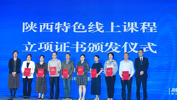 在高等教育分會(huì)場(chǎng)舉行的陜西省特色線上課程頒獎(jiǎng)活動(dòng)中,我校教師孫李麗、孫雪娥、廉潔、馮淵申報(bào)的《商洛花鼓戲翻譯與實(shí)踐》課程獲準(zhǔn)立項(xiàng),課程負(fù)責(zé)人孫李麗現(xiàn)場(chǎng)領(lǐng)獎(jiǎng)。