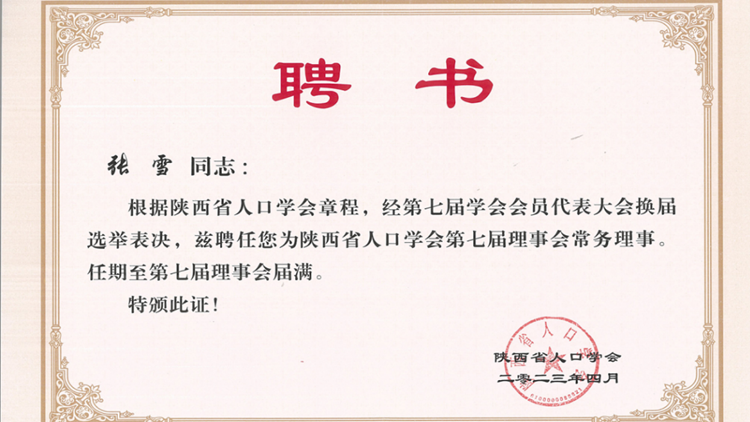 會議選舉產(chǎn)生了學(xué)會黨支部書記和支部委員,審議通過了學(xué)會第六屆理事會工作報(bào)告和財(cái)務(wù)審計(jì)報(bào)告,通過了《陜西省人口學(xué)會章程(草案)》,選舉產(chǎn)生了省人口學(xué)會第七屆理事會理事、常務(wù)理事、副會長、會長、秘書長。張雪當(dāng)選陜西省人口學(xué)會第七屆理事會理事及常務(wù)理事。